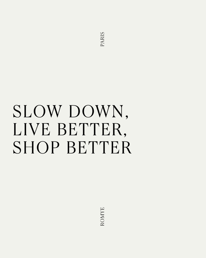 Chez Romye Paris nous avons à coeur de rester aligner avec nos valeurs et nos choix de fabrication, c'est pourquoi nous ne participerons pas au phénomène de surconsommation du Black Friday.